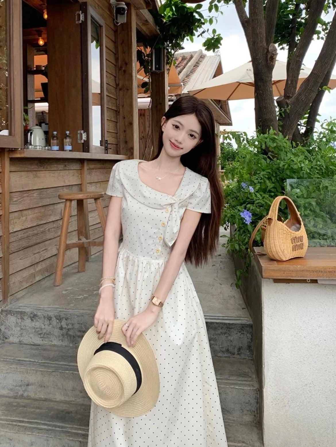 Apricot polka dot dress, gentle and ladylike